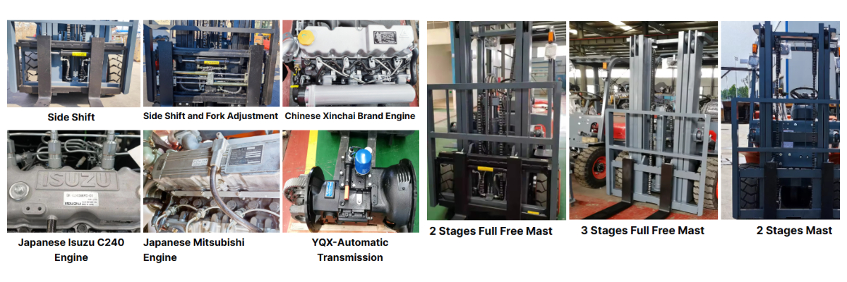Çin'in Xinchai, Japonya'nın Isuzu, Mitsubishi ve Yanmar gibi tanınmış motor markalarıyla donatılan forkliftlerimiz, düşük emisyon ve yakıt verimliliğini garanti ederken güçlü performans, olağanüstü dayanıklılık ve kolay bakım sunar.